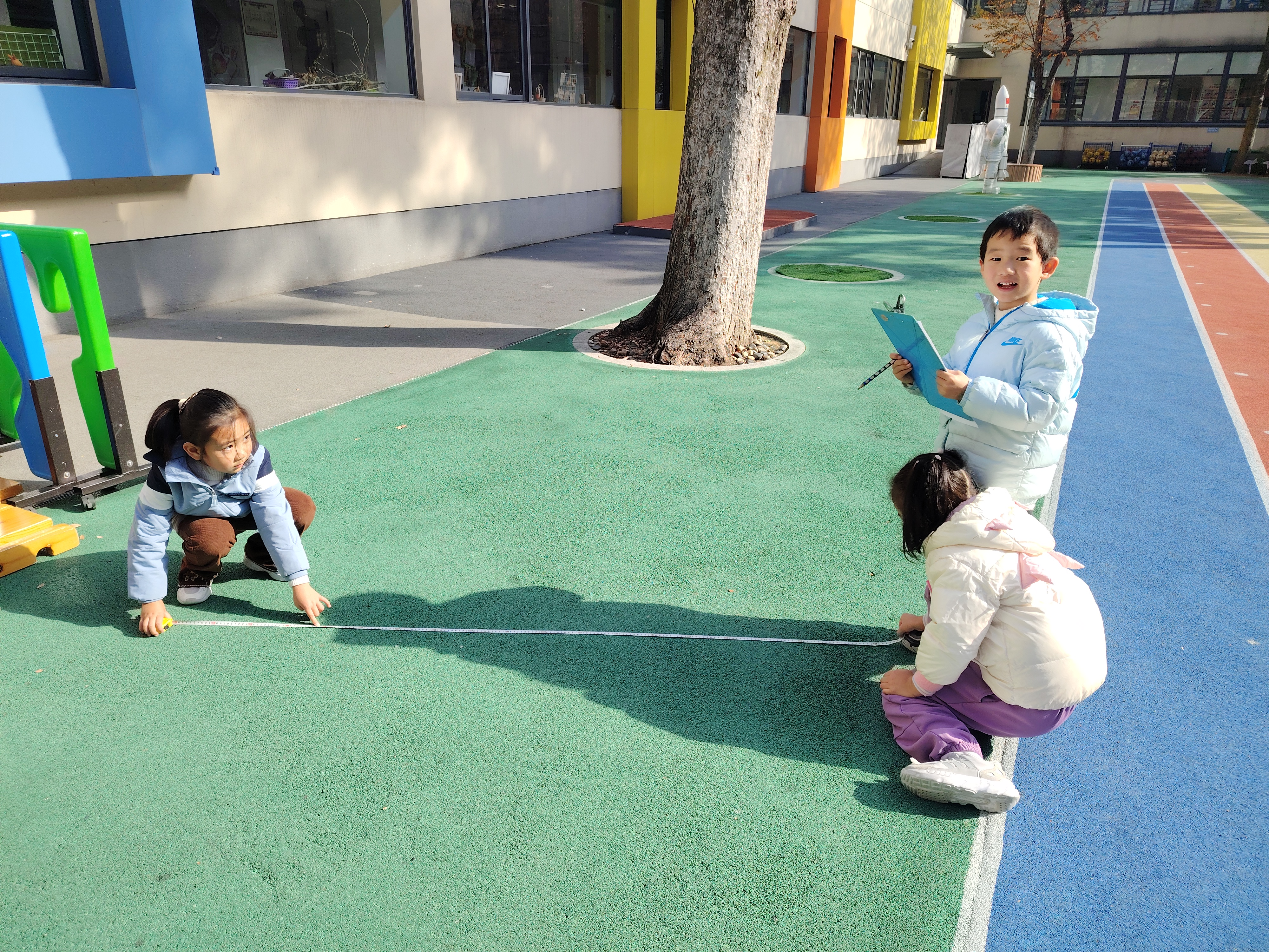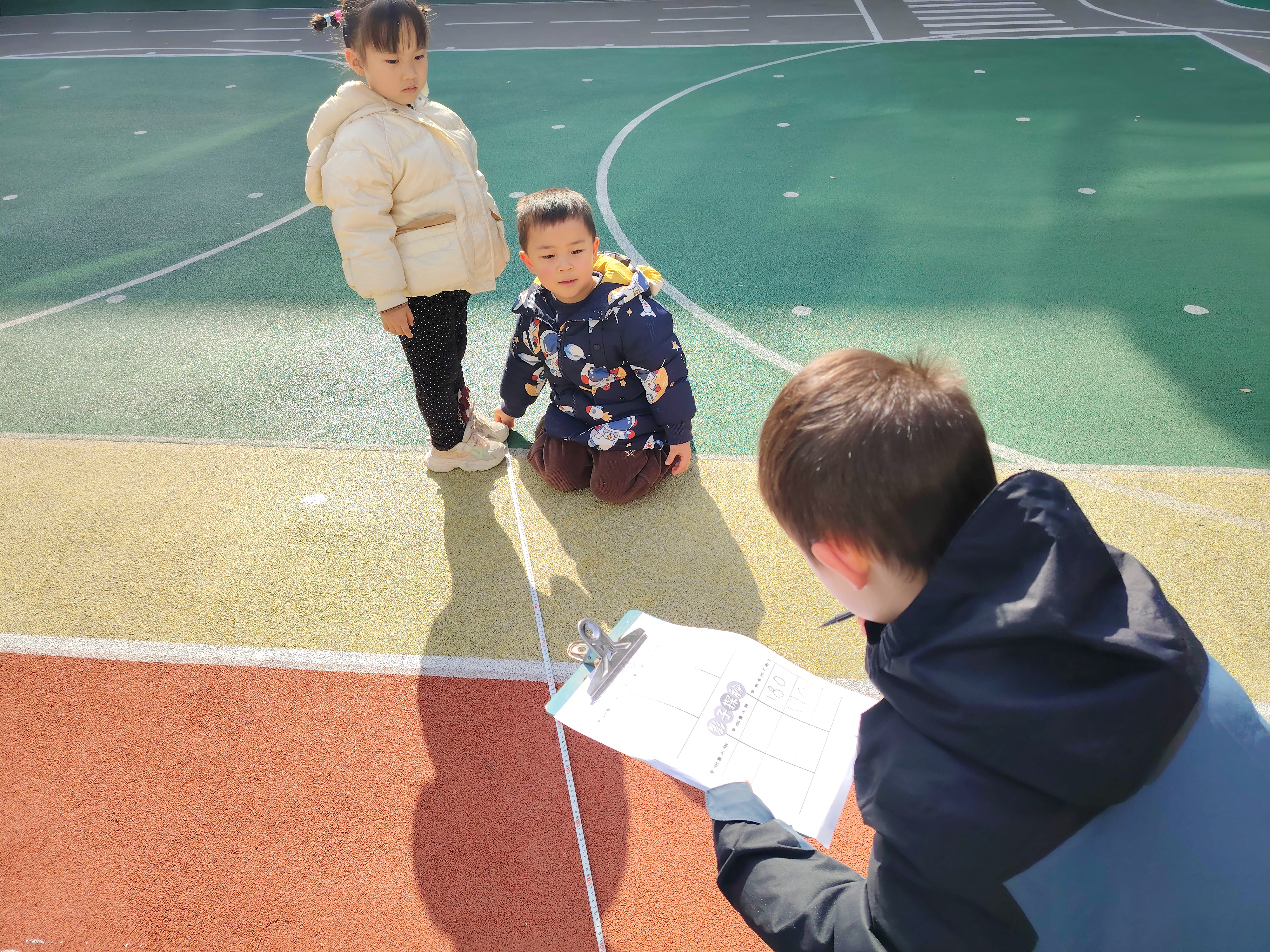 “影子测量大行动”里,孩子们化身“小小测量师”,在教师带领下于正午前后观测记录自身与树木的影子变化,直观感知“日短之至,影长之至”的冬至天文特点,深刻理解节气与自然规律的紧密关联。